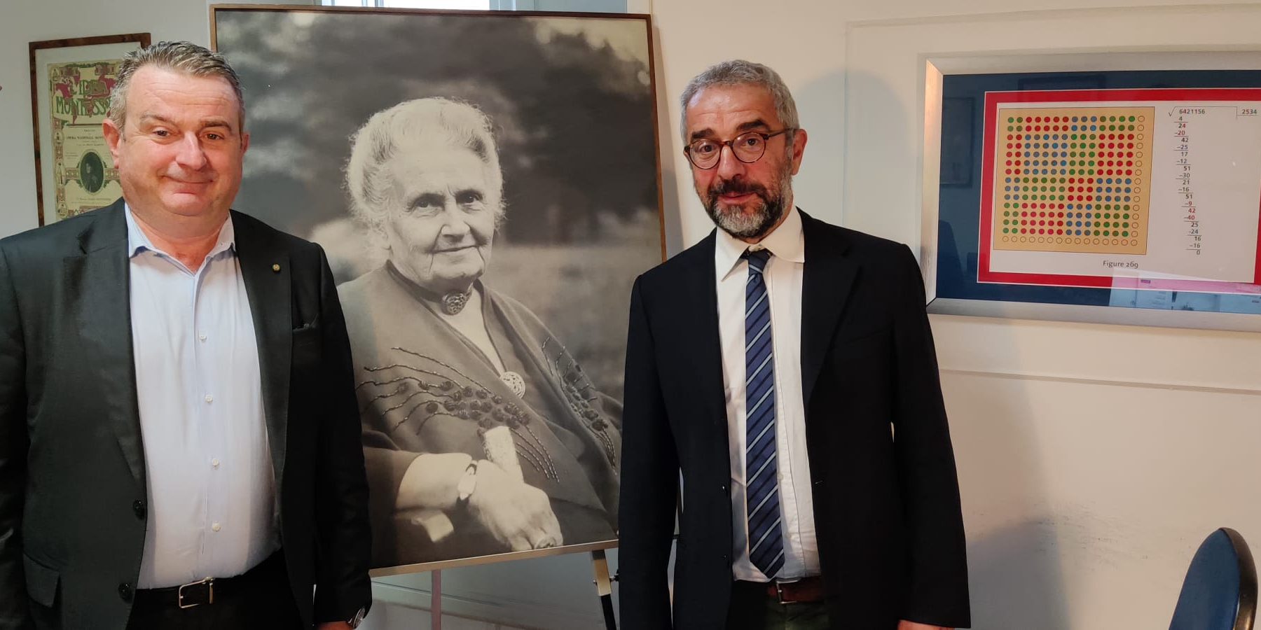Nella foto: Mauro Ghisellini, direttore di Acof, e Benedetto Scoppola, presidente dell’Opera Nazionale Montessori, nella sede di Roma da cui è stato trasmesso il congresso internazionale dedicato alla storica pedagogista italiana
